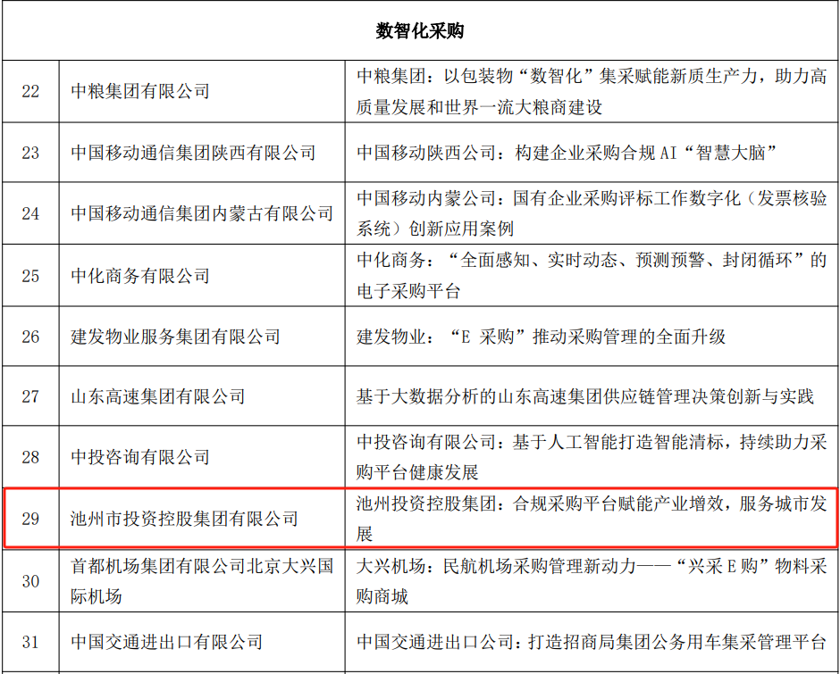 近日,中國(guó)物流與采購(gòu)聯(lián)合會(huì)公共采購(gòu)分會(huì)面向國(guó)企采購(gòu)領(lǐng)域征集優(yōu)秀案例活動(dòng)公布了評(píng)審結(jié)果,池州市投資控股集團(tuán)有限公司合規(guī)采購(gòu)平臺(tái)以“合規(guī)采購(gòu)平臺(tái)賦能產(chǎn)業(yè)增效,服務(wù)城市發(fā)展”為題,獲評(píng)2024年度全國(guó)公共采購(gòu)數(shù)智化采購(gòu)優(yōu)秀案例。