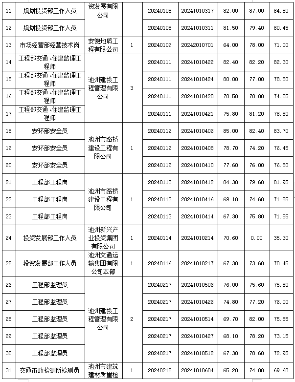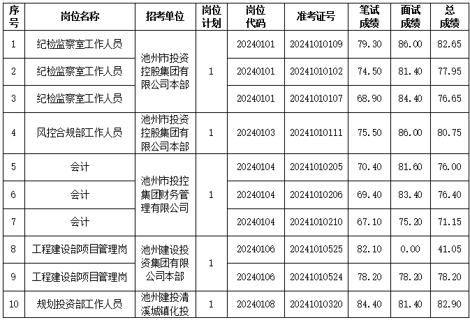 根據(jù)《池州市投資控股集團(tuán)2024年下半年公開(kāi)招聘工作人員公告》要求,下半年公開(kāi)招聘面試工作已結(jié)束,現(xiàn)將相關(guān)事宜公告如下。