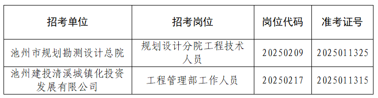 根據(jù)《池州市投資控股集團(tuán)2025年公開(kāi)招聘工作人員公告》要求,由于入圍體檢的考生中有部分人員自動(dòng)放棄或不合格產(chǎn)生了人員空缺。現(xiàn)按《公告》要求,視崗位情況進(jìn)行遞補(bǔ)?,F(xiàn)將入圍遞補(bǔ)體檢情況公告如下: