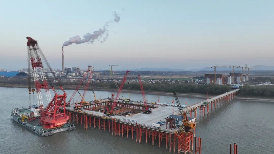 12月26日下午,在長(zhǎng)江池州段離南岸大堤約380米處的江中施工點(diǎn),隨著池州長(zhǎng)江公鐵大橋4號(hào)墩圍堰內(nèi)最后一方封底混凝土的灌入,由集團(tuán)承建的池州長(zhǎng)江公鐵大橋4號(hào)主墩圍堰封底順利完成,標(biāo)志著池州長(zhǎng)江公鐵大橋即將進(jìn)入主墩承臺(tái)施工階段,為池州長(zhǎng)江公鐵大橋主塔施工打下堅(jiān)實(shí)基礎(chǔ)。
