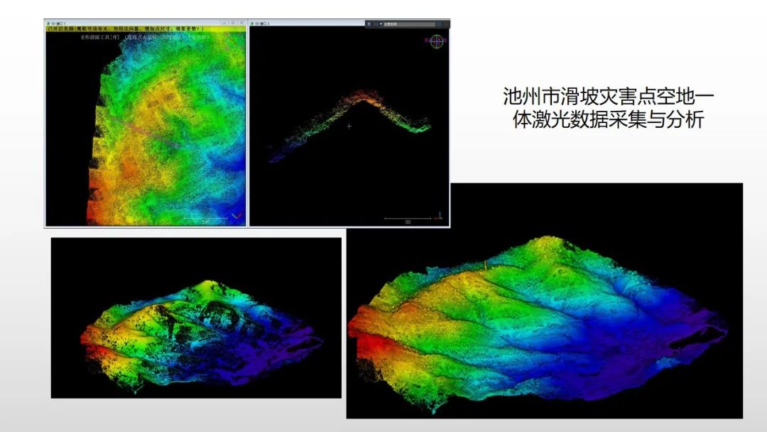 ▲池州市滑坡災(zāi)害點(diǎn)空地-體激光數(shù)據(jù)采集與分析