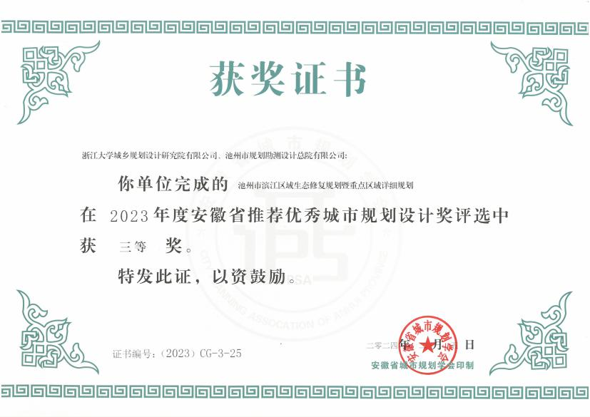 近日,安徽省村鎮(zhèn)建設(shè)學(xué)會和安徽省城市規(guī)劃學(xué)會分別揭曉了2023年度安徽省優(yōu)秀村鎮(zhèn)建設(shè)設(shè)計品質(zhì)示范工程和2023年度安徽省推薦優(yōu)秀城市規(guī)劃設(shè)計獎的獲獎名單。由集團所屬設(shè)計總院公司編制完成的《池州市貴池區(qū)梅街鎮(zhèn)姚街村村莊規(guī)劃》和《池州市濱江區(qū)域生態(tài)修復(fù)規(guī)劃暨重點區(qū)域詳細規(guī)劃》兩個項目分別榮獲2023年度安徽省優(yōu)秀村鎮(zhèn)建設(shè)設(shè)計品質(zhì)示范工程(村鎮(zhèn)規(guī)劃設(shè)計與公共服務(wù)設(shè)施)三等獎和2023年度安徽省推薦優(yōu)秀城市規(guī)劃設(shè)計獎三等獎。